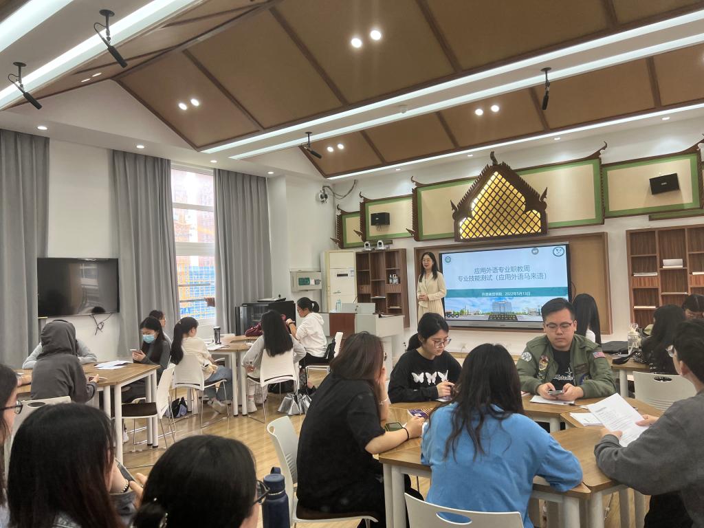 应用外语专业核心技能考核对照专业人才培养方案要求,分别考察马来语和柬埔寨语的基本发音、语音语调、语言组织等语言应用的基本技能,并最终评定考核等级。本次参与考核的学生为20级应用外语全体学生共82人,应用外语专业专任教师分成两个小组,参与本次测试的评审工作。