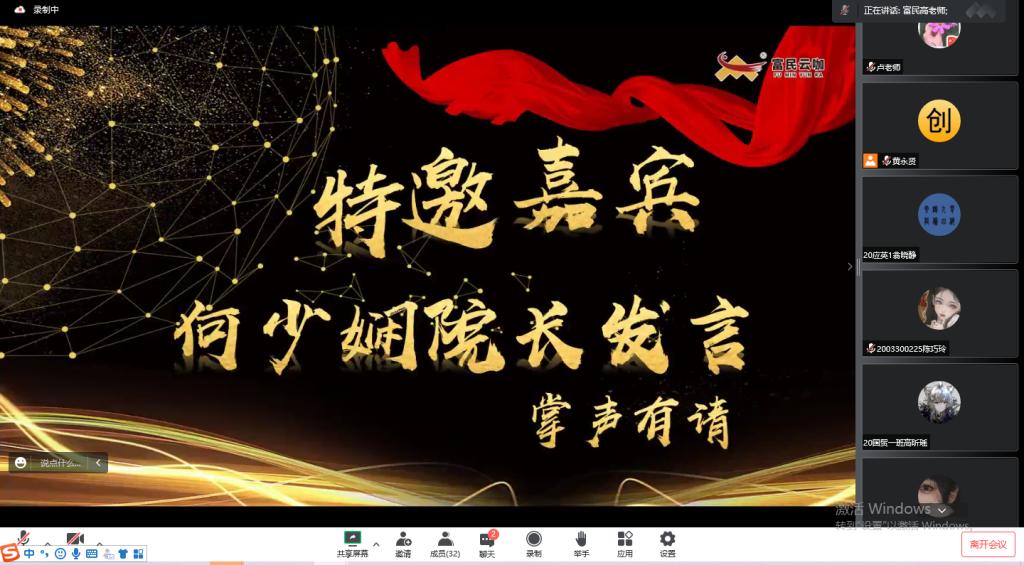 最后,何少娴院长和魏丽琴总经理作为特邀嘉宾进行了发言。何少娴院长感谢了企业对工作室的支持和实战资源的引入,并对同学们的学习热情表示感动和欣慰,鼓励同学们在未来继续努力,成为社会需要的人才,为社会、国家做出贡献。魏丽琴总经理表示,富民云咖产业学院将从技能竞赛、新媒体运营实战、创新创业等方面提供更多的实践、实习和就业机会给同学们,希望同学们学有所成。