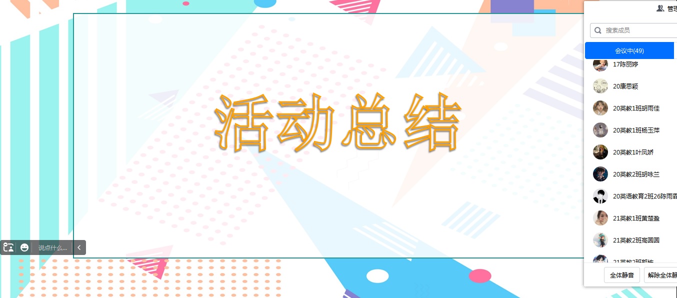 为了引导学生树立专业自豪感和职业认同感,增进21级小学英语教育学生对英语实习相关事宜的了解,外语商贸学院英语教育教研室于2023年5月16日晚开展实习经验分享云座谈会。20级各小学实习队的学生队长,21级小学英语教育的学生代表,以及安排实习活动的相关教师参加了本次活动。