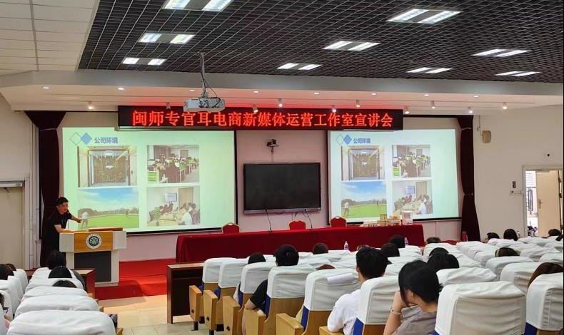 为加强校企合作,共同培养适应电子商务行业发展的高素质人才,6月5日下午,外语商贸学院于旗山校区2018教室举行“官耳电商新媒体运营工作室”宣讲会,由福州官耳生物科技有限公司翁赋冬总经理一行到校为22级跨境电商专业群全体学生进行项目宣讲。宣讲会由外语商贸学院副院长陈海燕老师主持,商贸教研室陈池老师、应用外语教研室郑美玲老师出席。