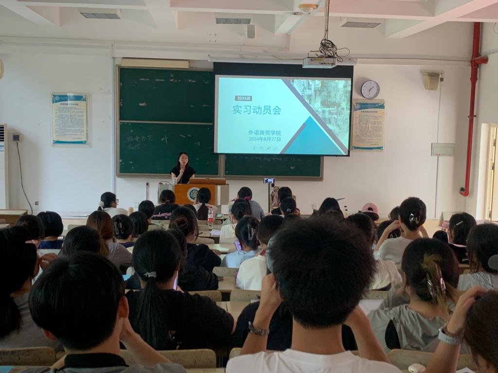 为顺利推进2025届毕业生实习工作,确保每位同学能够安全、有序地踏上实习岗位,2024年8月27日,外语商贸学院商贸教研室、应用外语教研室分别于教学楼1018和1014教室召开2025届毕业生实习动员大会。学院党总支副书记卢燕红副院长陈海燕、教研室主任、实习指导教师、辅导员及全体2025届非师范毕业生共同参与本次动员会。