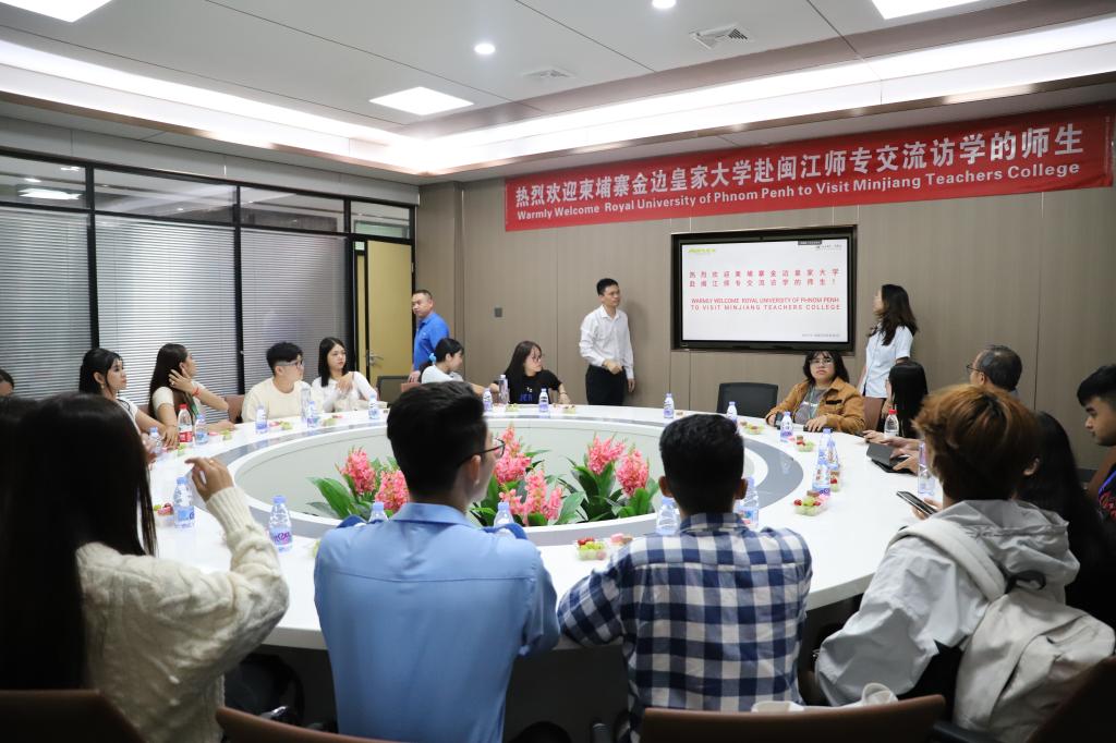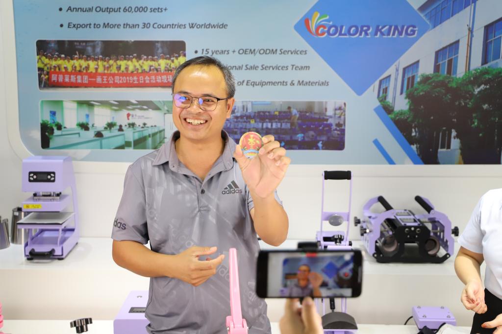 师生一行首先在阿普莱斯创业园会议室听取阿普莱斯发展史的汇报,了解集团在柬埔寨发展的情况。随后,师生们参观阿普莱斯办公楼、园区、样品间、直播间并观看直播。最后,师生们在企业人员指导下操作热转印机,他们将亲手制作的校徽佩戴胸前,现场气氛热烈,掌声喝彩不断。