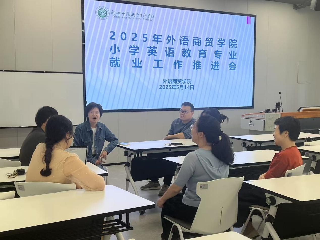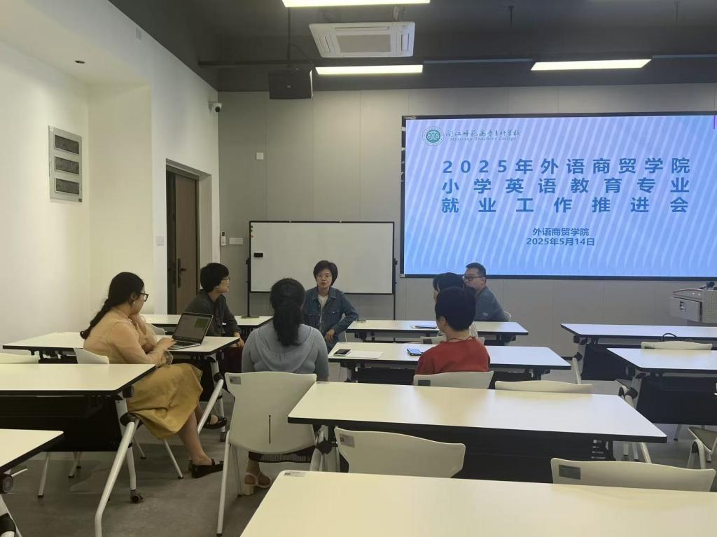 为进一步落实毕业生就业工作,提升小学英语教育专业学生就业质量。2025年5月14日下午,外语商贸学院小学英语教育专业开展2025届毕业生就业工作推进会。学院院长何少娴、副院长陈海燕以及小学英语教育专业全体教师共同参会。