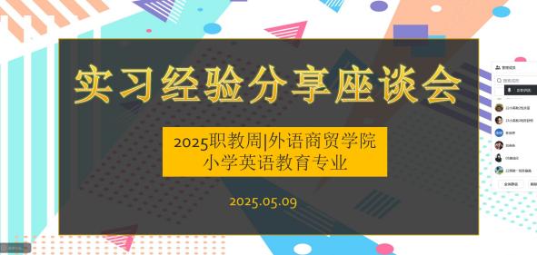 为助力23级小学英语教育专业学子筑牢专业自信之基,深化职业价值认同,精准把握英语教育实习的关键要点与成长路径,外语商贸学院英语教育教研室于2025年5月9日晚举办一场实习经验线上分享会。活动汇聚了22级各小学实习队的学生队长、23级小学英语教育专业的学生代表,以及参与本次实习指导工作的部分专业教师。