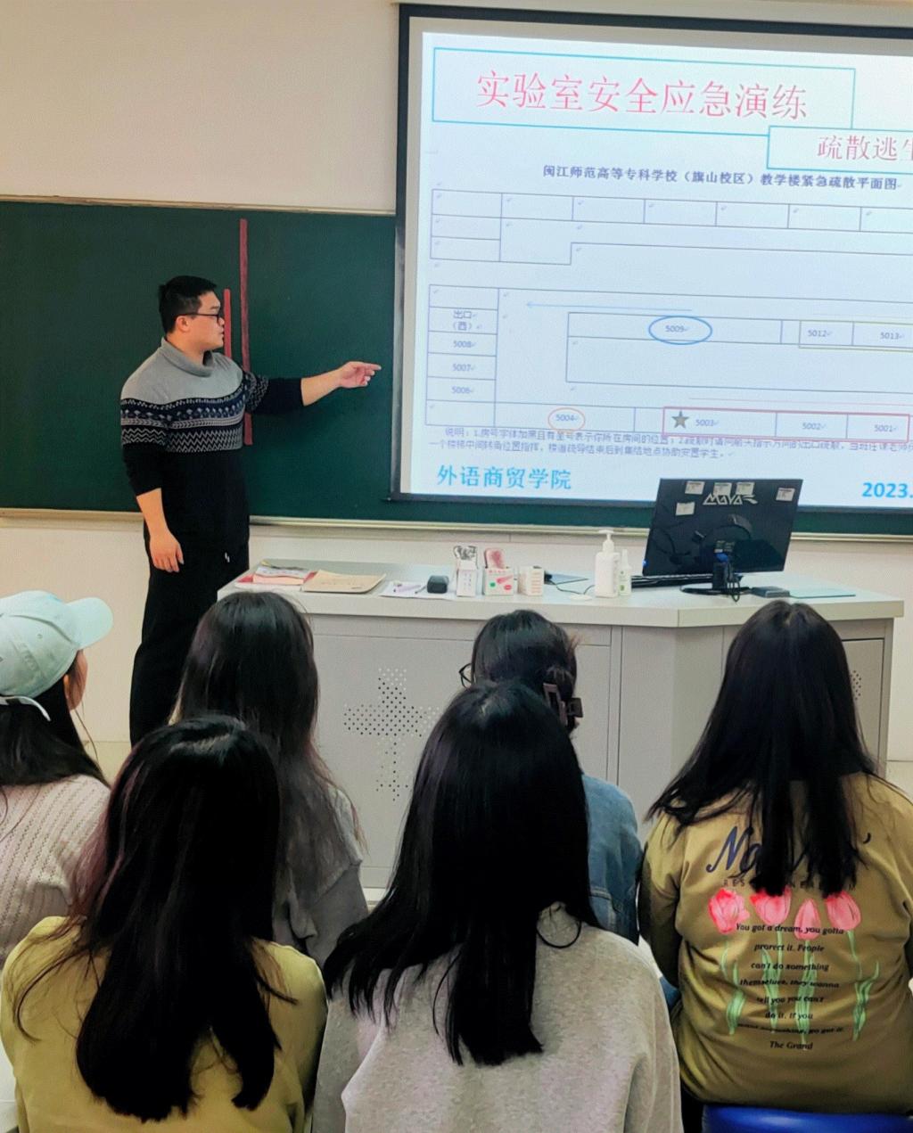 根据福建省教育厅《福建省教育厅办公室关于进一步做好学校安全演练的通知》(闽教办安[2023]1号)的文件精神,以及大赢家体育app下载《关于开展实验室安全应急演练的通知》(闽师专教[2023]5号)的文件要求,外语商贸学院部署组织旗山、仓山、海口三个校区的实训室开展不同主题的实训室安全演练。