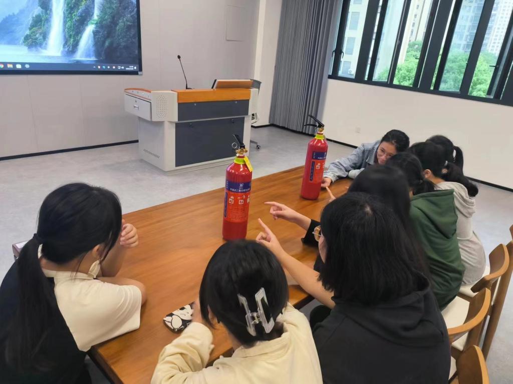 随后,活动进入实践认知环节。在实训室管理人员的专业指导与演示下,同学们对配置在实训室内的各类灭火器进行了近距离的观察和了解。这一环节有效提升了同学们对消防器材的辨识能力放置位置和灭火初步操作认知。