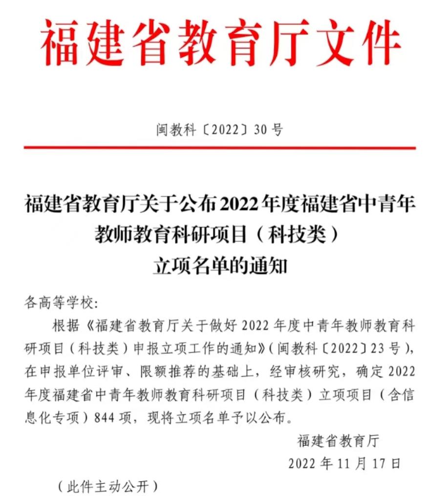 近日,福建省教育厅公布了2022年度福建省中青年教师教育科研课题(科技类)立项名单,我院教师韩静作为主持人申报的《数字经济背景下福建跨境电商综试区建设的路径研究》课题喜获立项,实现我院在申报科技类科研课题方面的新突破。