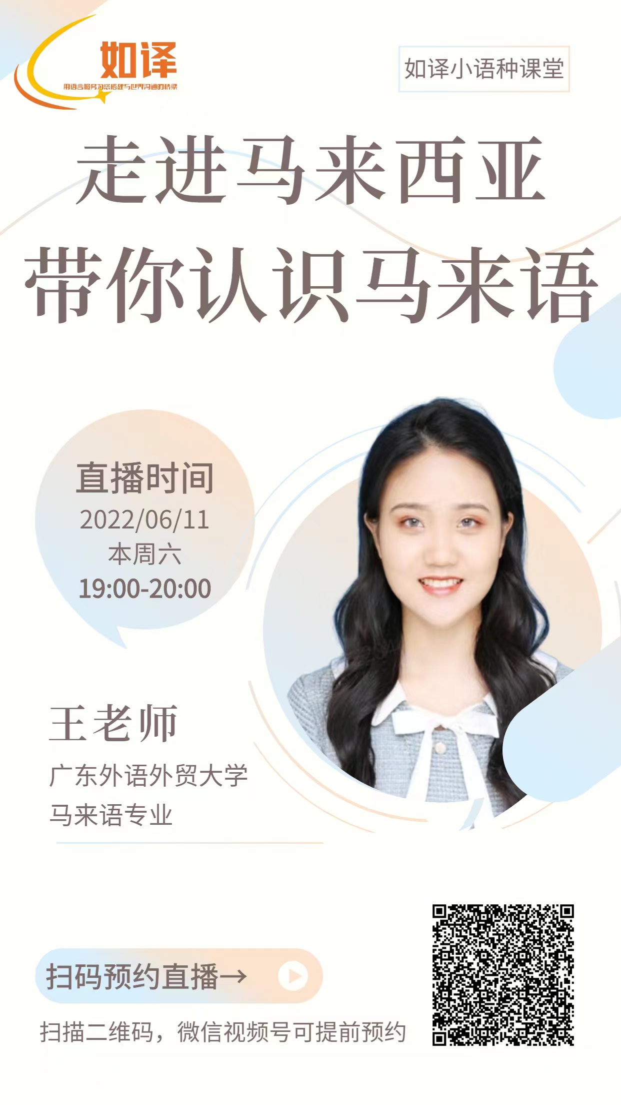 在本次直播课中,王心宜老师通过演唱马来语歌曲、讲述马来民俗故事、分享个人游学经历等方式向如译公司的学员们介绍了马来语和马来西亚的基本知识、带领大家感受独特的南洋文化。直播课程中王心宜老师对于学员的在线提问也进行了详细的解答。