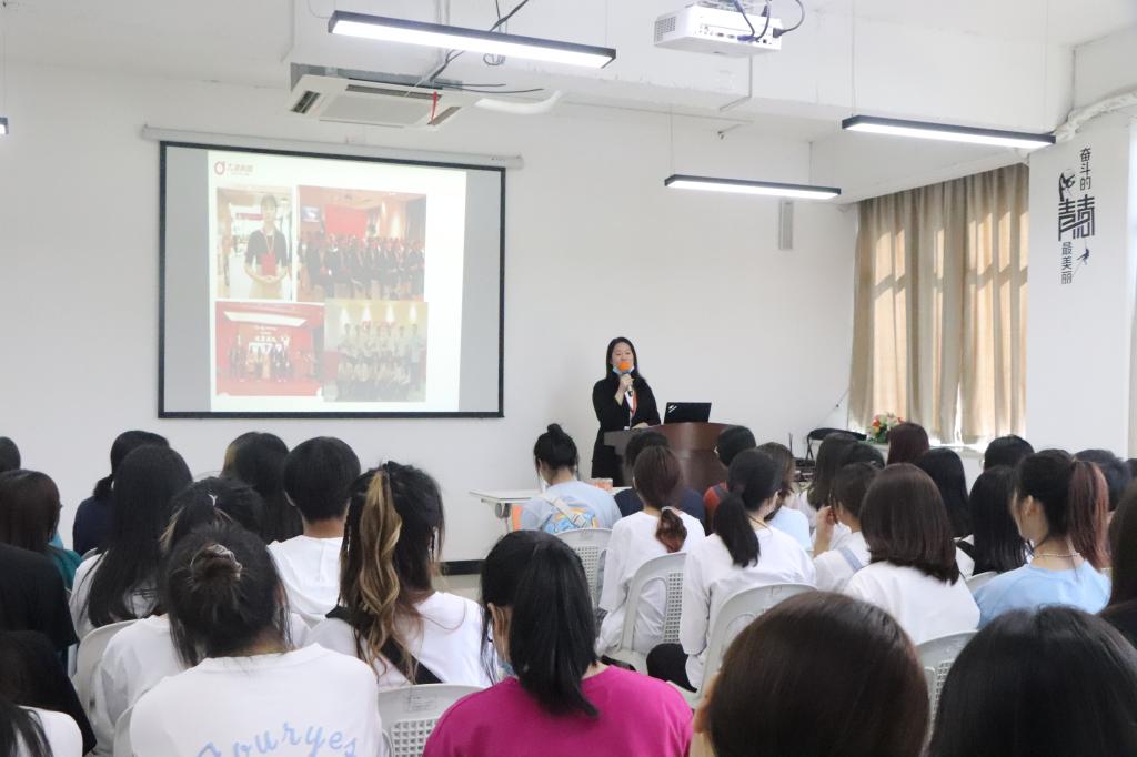 本次见习以一个热身游戏开始拉开帷幕,成功破冰,同学们热情高涨。接着学生被分成三组参观了公司部门的工作环境、了解公司文化以及公司的发展简史。随后16级应用英语专业毕业生黄巧燕分享了她在公司工作三年从学生兵逆袭成为职业精英的心路历程。在场的同学们都听得十分认真,提问环节大家踊跃提问交流,现场气氛热烈。最后公司的陈总监进行了企业的宣讲,介绍了大泽科技公司的发展历程,分析了互联网行业的发展现状、发展特点及未来趋势。活动最后,何凌老师对大泽公司的宣讲和学姐的分享表示感谢,并希望同学们可以将所学的内容应用于日常的学习生活中。