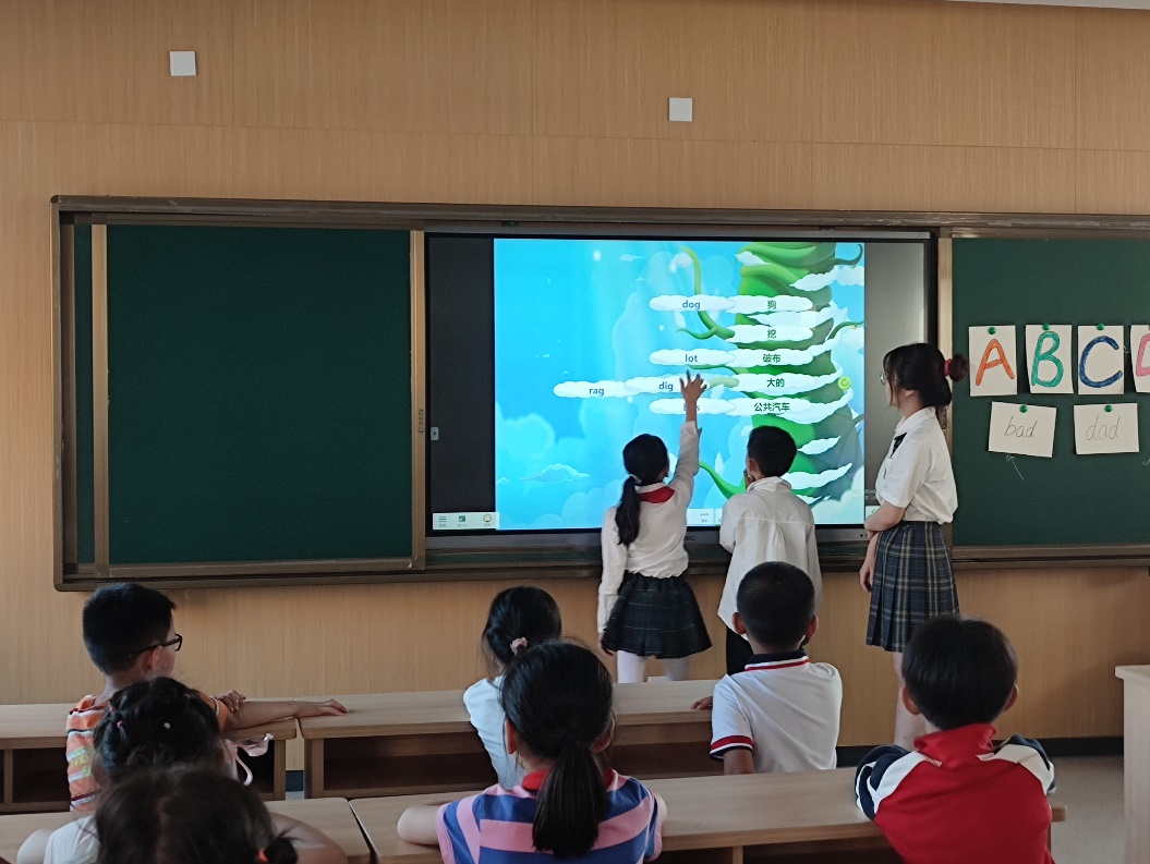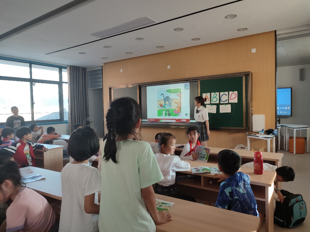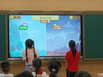 在课堂上,学生们积极参与丰富的课堂活动,包括上台参与单词连线游戏,正确率高的学生则有小红花作为奖励。同时小杨老师也请同学表演歌谣,既锻炼学生的表达能力,也提升了学生的上课效率。本次绘本教学活动学生参与非常积极,达到很好的效果。