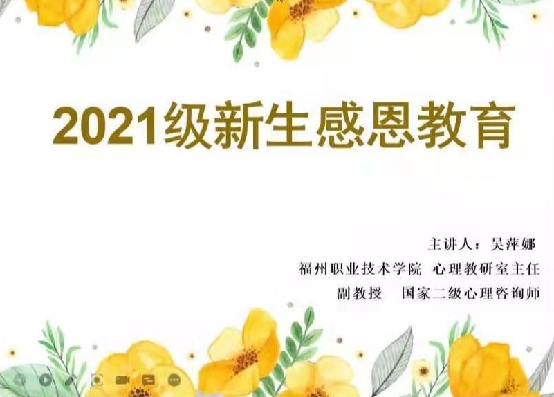 为让新生更好地认识自我、珍爱生命,树立良好感恩意识,成为富有社会责任感的新时代新青年,2021年9月29日14:30外语系特邀国家二级心理咨询师吴萍娜老师通过线上会议方式为21级全体新生开展了一场温暖深刻的生命与感恩教育主题讲座。