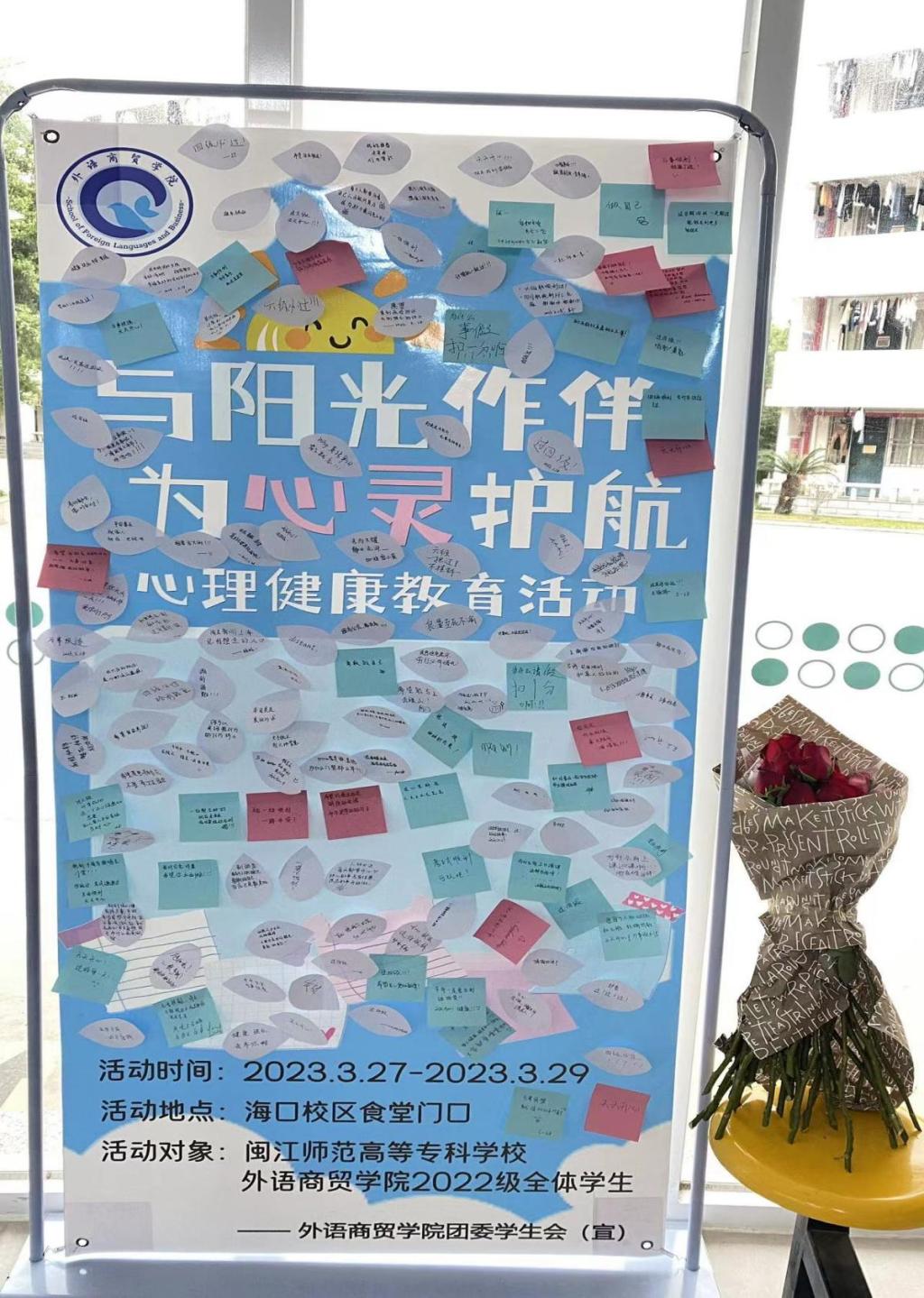 为了使同学们保持乐观的心态,促进同学们的身心健康发展,3月27日-3月29日,在海口校区食堂门口,我院开展了心理健康主题教育活动。
