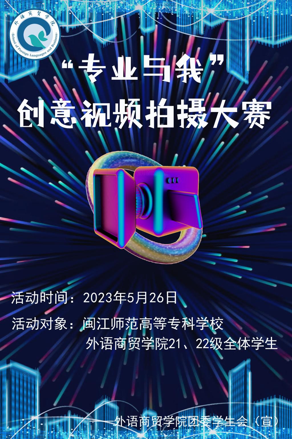 为大力弘扬劳动光荣、技能宝贵、创造伟大的时代风尚,宣传展示技能创造美好生活、职业教育“长入经济、汇入生活、渗入人心、融入文化、进入议程”的改革发展成果,积极营造人人皆可成才、人人尽展其才职业教育环境,外语商贸学院应用外语专业于5月8日-5月24日开展职教周“专业与我”视频拍摄剪辑大赛。