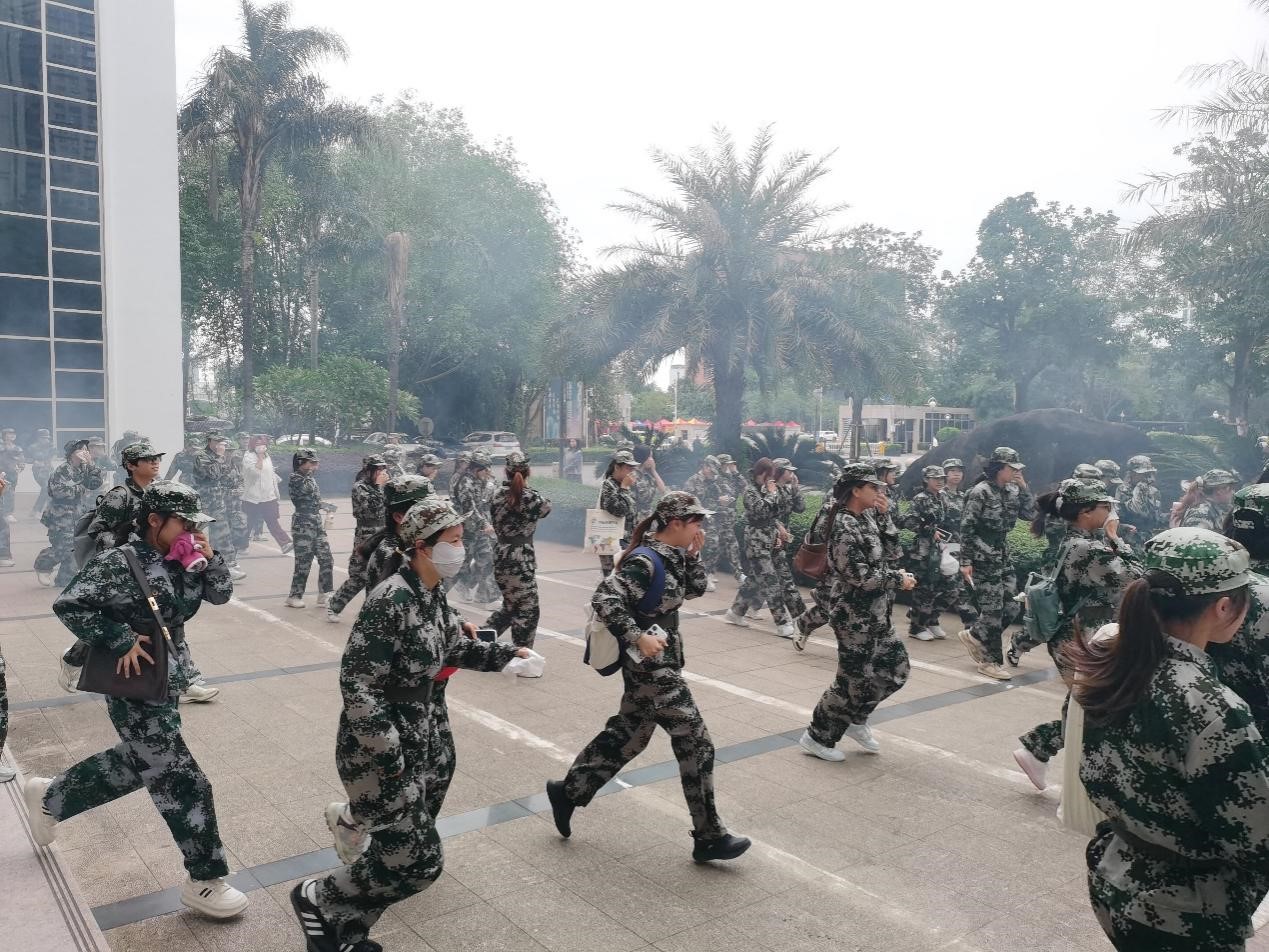 活动伊始,新生认真倾听消防安全知识讲座。消防安全专家从大火灾案例展开,详细介绍了火灾发生时的报警程序以及火灾逃生和自救的方法技巧。随后,辅导员进行疏散方案的讲解,强调了演练流程,确保学生们能理解并记住疏散路线和安全集合点,为接下来的疏散演练做好充分准备。最后,同学们遵循教官的指示,用湿毛巾捂住口鼻,弯腰低姿快速而有序地撤离,全员在规定时间内集中于操场,完成了在模拟烟雾环境下的安全疏散。