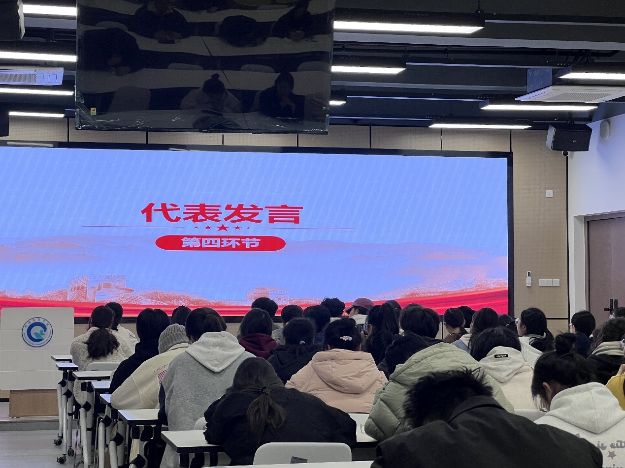 活动伊始,同学们共同合唱国歌《义勇军进行曲》,在响亮的合唱声中表达着爱国情感。随后,组织部部长叶陈凤讲述“一二·九”运动的相关内容,并结合相关视频回顾了“一二·九”运动的历史事件。紧接着,通过分享蒋南翔、王士光以及陆璀三位伟人在不同时期为中国民族独立和抗日战争的重要贡献,让同学们感受到那个峥嵘岁月里的激昂与无畏。最后,发言代表紧扣主题,轮流讲述了先辈的英勇事迹,分享自己对历史的理解与感悟。