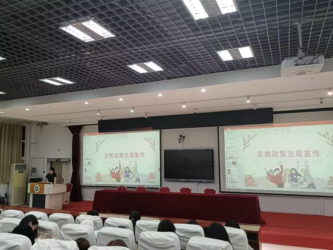为深入贯彻落实党的宗教工作方针,外语商贸学院于5月18日7:30在旗山校区2018教室开展“宗教政策宣传”的主题讲座,该讲座由各班辅导员主讲,外语商贸学院全体学生参加。