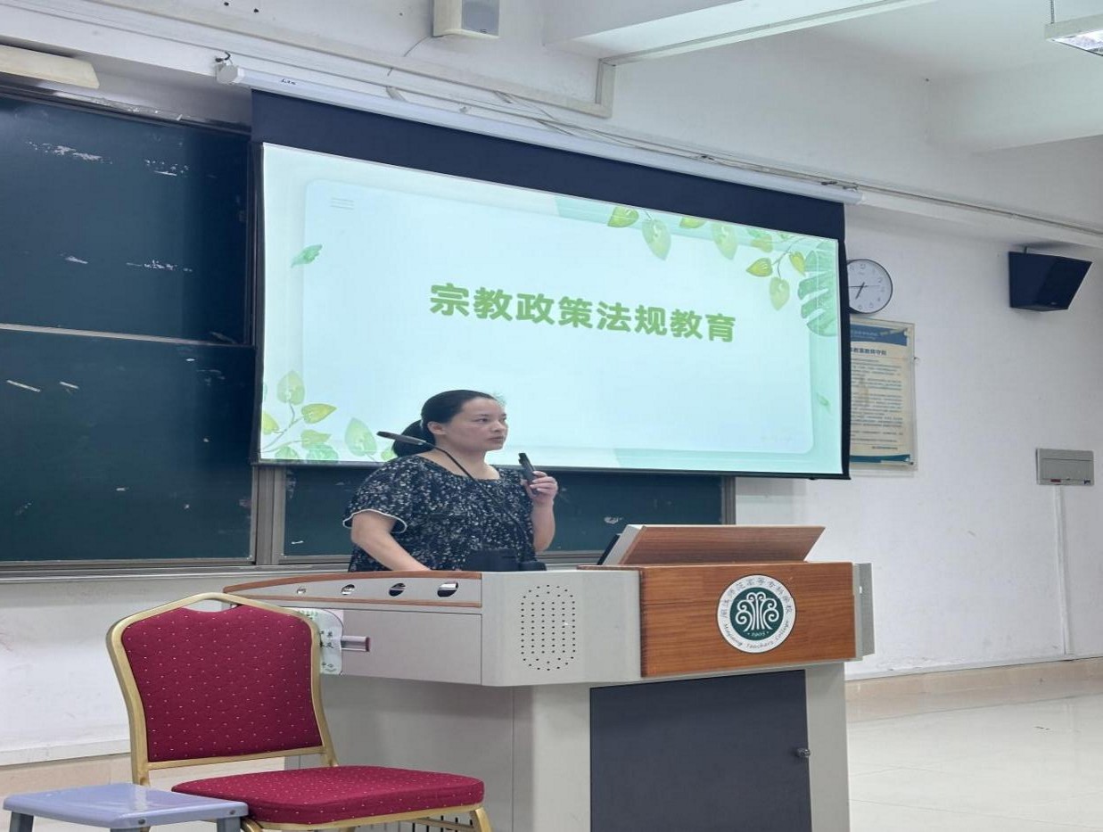 2025年9月23日,外语商贸学院开展“宗教政策宣传”主题讲座,由各班级辅导员主讲。