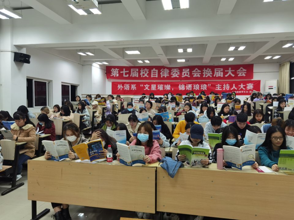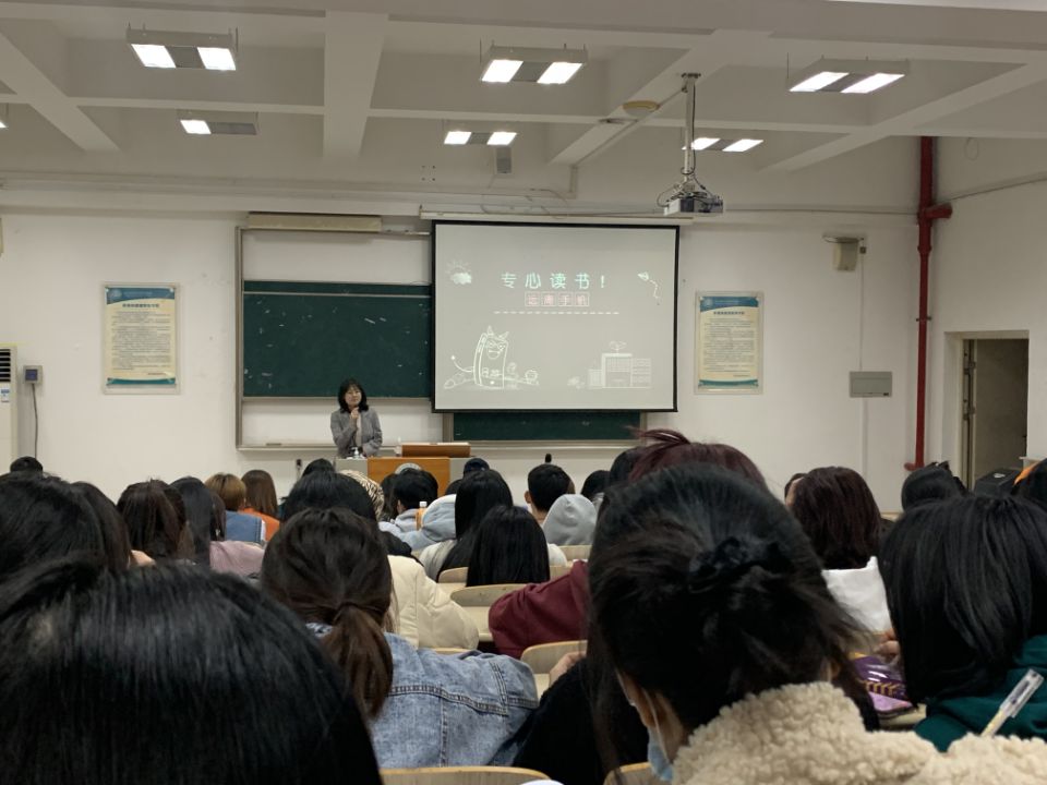 2020年12月13日晚上,“捧着一本书来”的主题教育活动在教学楼1014教室开展,本次教育活动的主要目的和意义是倡导学生远离手机,专心读书,鼓励学生走出宿舍、走进教室、走进图书馆,用心阅读,用心备考。本次活动对象为外语系2019级应用英语专业、柬埔寨专业、马来语专业的全体同学。活动的主要形式是外语系辅导员欧阳花老师与学生分享读书经历,为学生介绍读书学习方法以及与学生进行互动。