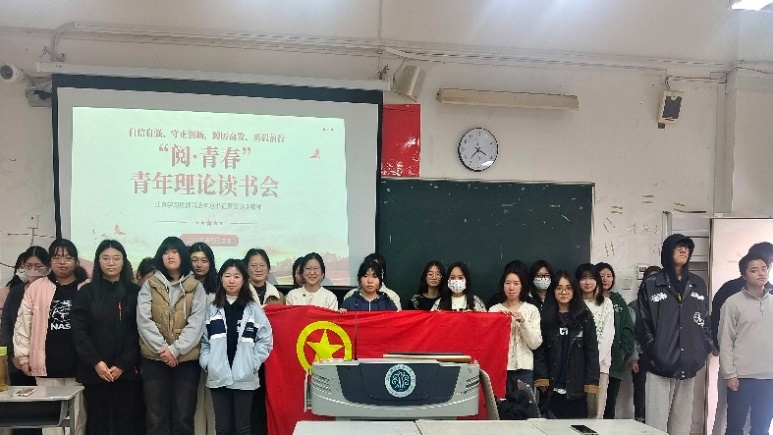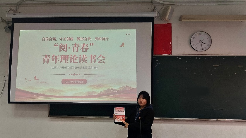 为全面领悟党的二十大精神,鼓励团员青年阅读原著、研读原文,通过讲解和研讨等方式感受真理的力量,外语商贸学院22应用英语1和2班团支部于3月12日在1001教室开展“阅·青春”青年理论读书会活动。