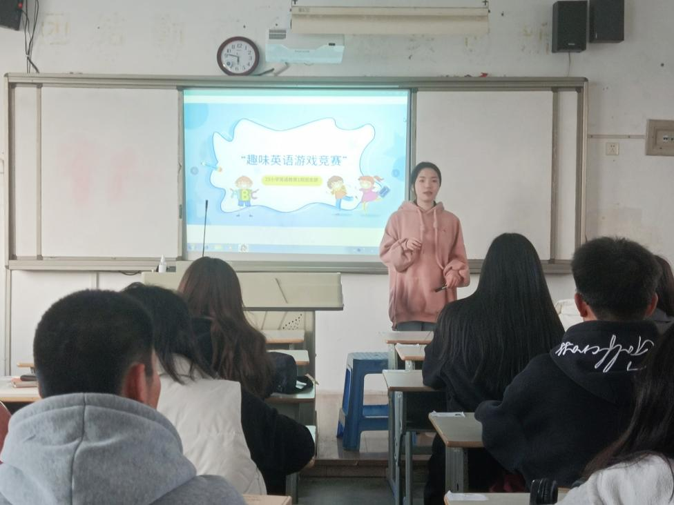 2024年3月20日,我院23级小学英语教育1班团支部立足自身专业,举办了一场精彩的趣味英语游戏竞赛。此次活动旨在通过寓教于乐的方式,激发同学们对英语学习的兴趣,提高英语知识的应用能力,丰富同学们的课余生活,同时在活动中培养同学们的团队意识和协作精神。