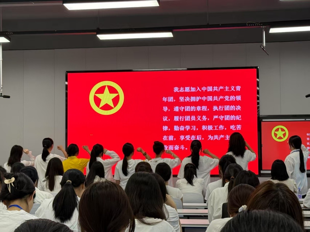 大会在庄严的国歌声中拉开帷幕。在全场师生的共同见证下,学院团委组织部部长叶陈凤领誓,新团员们整齐列队,面向鲜艳的团旗,高举右拳,以坚定而洪亮的声音庄严宣誓:“我志愿加入中国共产主义青年团……”誓言字字千钧,彰显着他们作为新时代青年的青春担当与坚定信念。