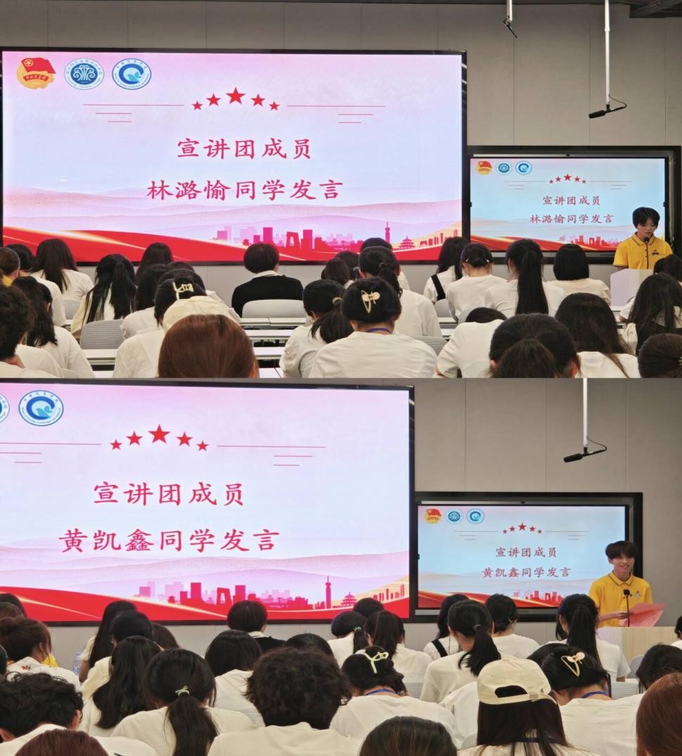 为更好传播“以奋斗精神为动力、以梦想追求为导向”的价值观念,发扬青年学生的榜样力量,鼓励青年立大志、担大任,将个人成长与国家发展紧密结合,外语商贸学院学生党支部成立“奋楫逐梦”青年宣讲团。党总支书记林锦芯为宣讲团授旗。成立仪式上,宣讲团成员结合“五四精神”与青年成长,进行第一次宣讲。