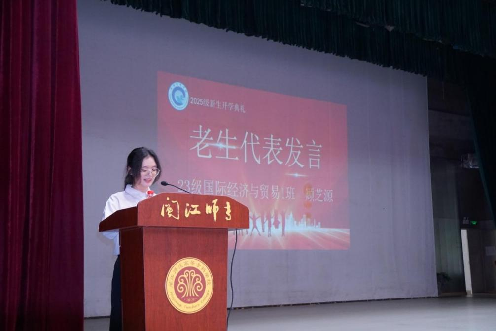 2025级国际经济与贸易1班陈欣妍同学作为新生代表发言。