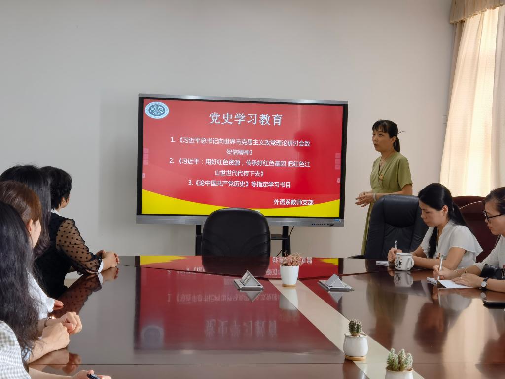 2021年6月3日下午2:00,外语系教师支部在行政楼7楼会议室召开6月理论学习和“红色外语”之“建党100周年”系列微党课学习。本次理论学习和微党课活动均由陈虹同志主持。