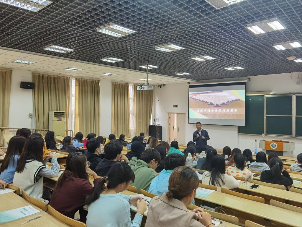 课上,陈荣生书记以习近平总书记心系“三农”、以人为本的深厚情怀为切入点,结合宁德下党乡、巴西贫民窟等通俗易懂的案例,详细阐述了乡村振兴战略的时代背景、总目标总要求、深刻意义以及具体举措,深入浅出地为同学们全面解读了“乡村振兴”。