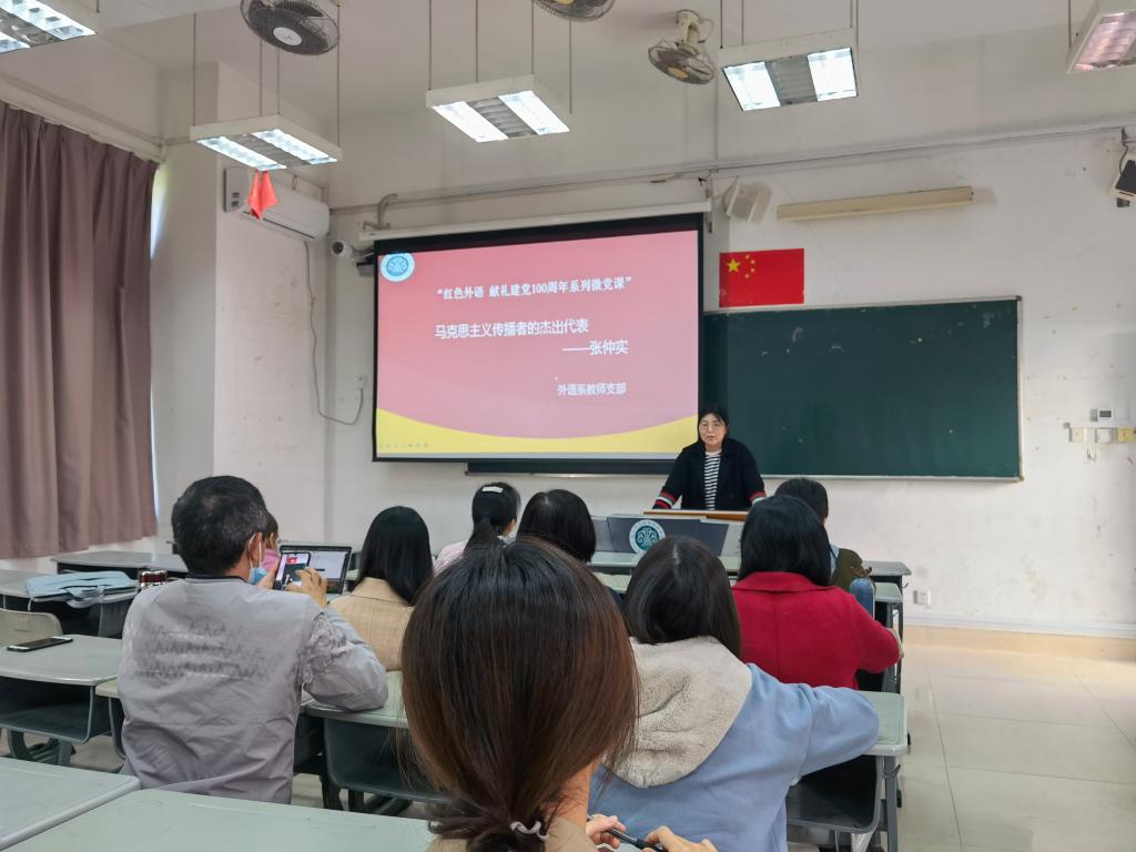 2021年11月24日下午,外语系教师支部于旗山2-1003教室开展了11月份理论学习和“红色外语”之“建党100周年”系列微党课学习。