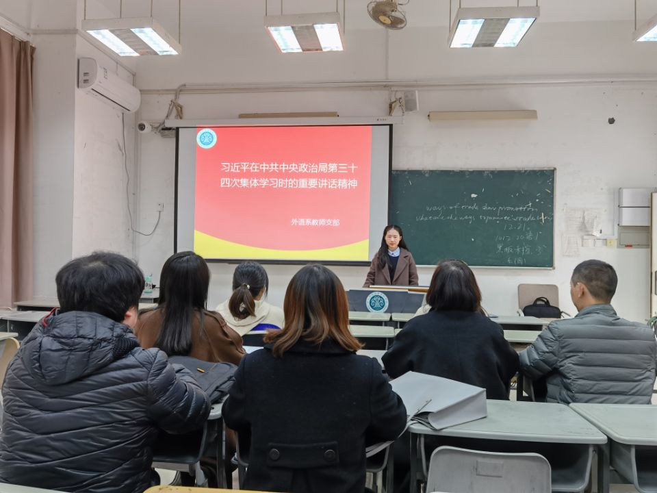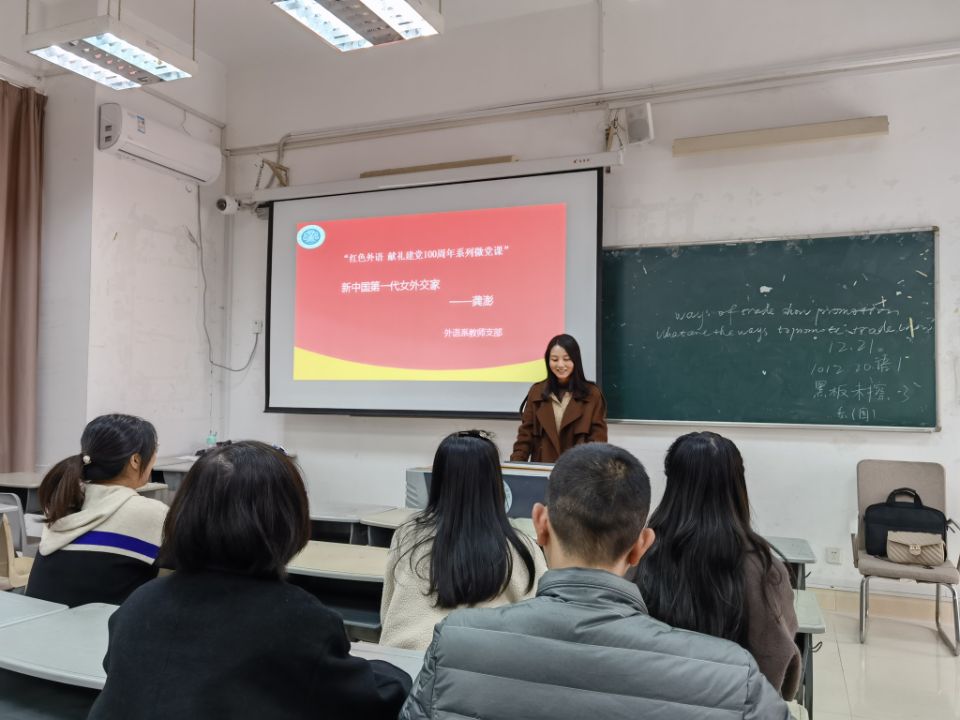 2021年12月8日下午,外语系教师支部于旗山2-1012教室开展了12月份理论学习和“红色外语”之“建党100周年”系列微党课学习。