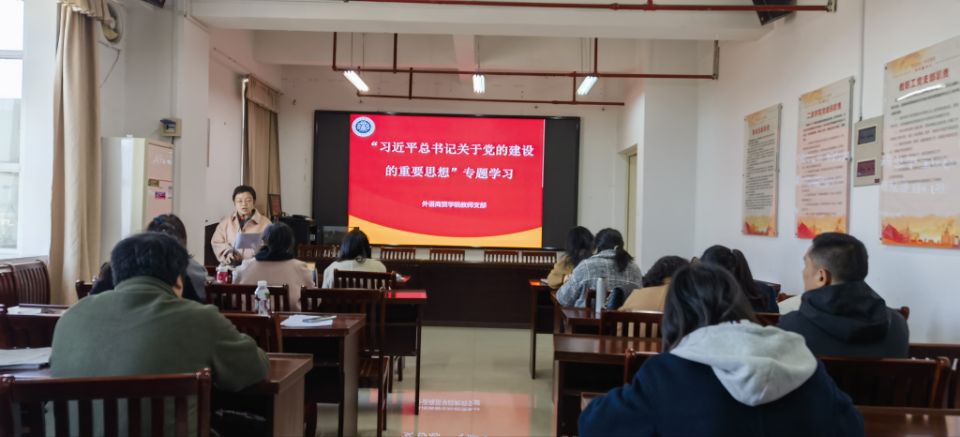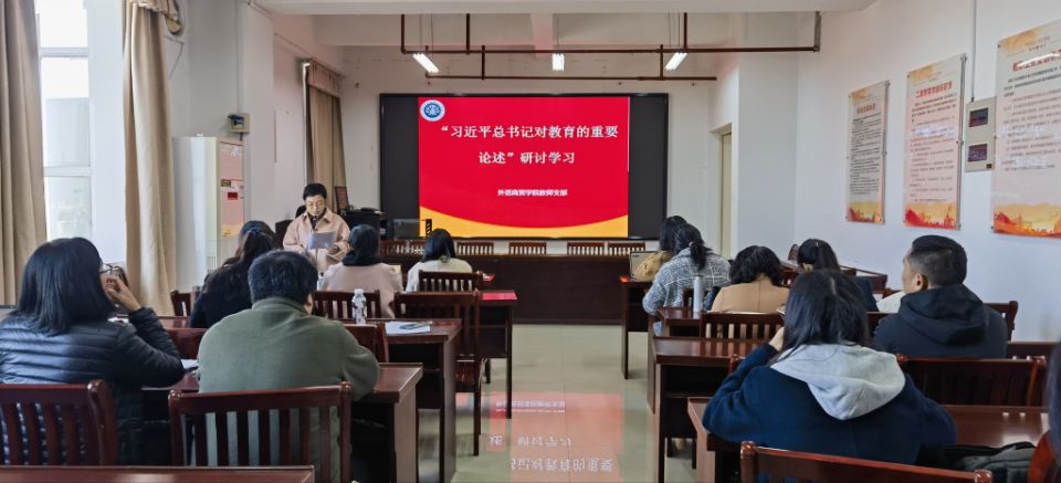 2023年12月27日下午1点,外语商贸学院教师支部在综合楼8楼党员会议室开展12月主题教育专题学习。