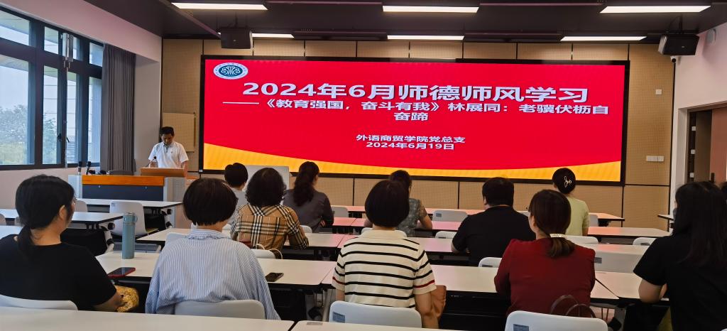 为深入学习贯彻习近平新时代中国特色社会主义思想,特别是习近平总书记关于教育的重要论述,发挥“五老”亲历者、见证者、实践者的优势,教育引导广大党员教师树立坚定的理想信念,6月19日下午,外语商贸学院党总支于产创楼E-307开展6月师德师风学习——学习《教育先行者》林展同老师的先进事迹。