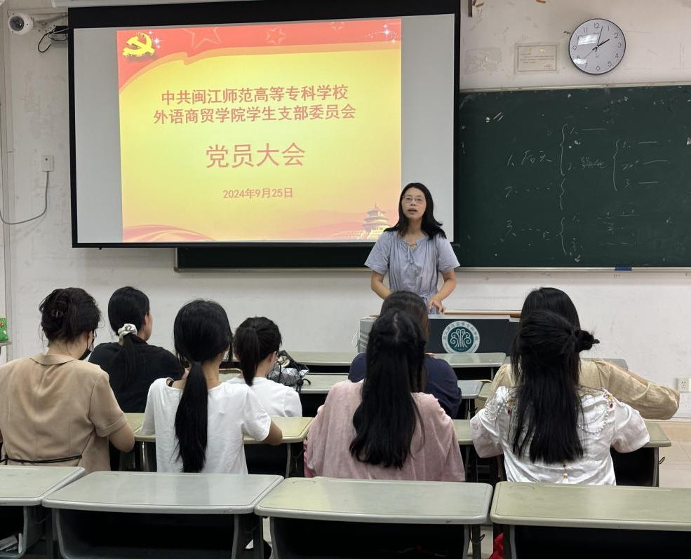 9月25日下午,外语商贸学院学生党支部在旗山校区1009开展换届选举大会。会议由支部书记练栅栅主持。