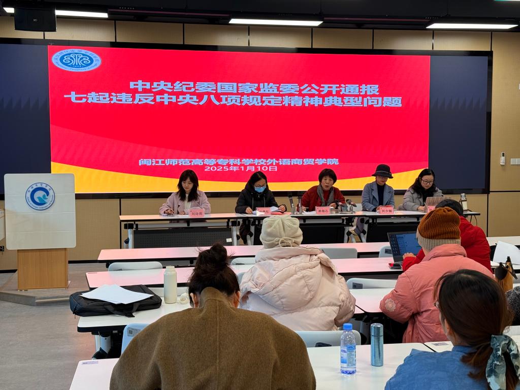 1月10日,外语商贸学院在产创楼307会议室召开了以“元旦春节廉政教育”为主题的专题会议。会议由党总支书记林锦芯主持,学院全体教师参加了会议。此次会议旨在强化节日期间廉洁自律意识,倡导廉洁从教,以风清气正的氛围推动学院教育事业的高质量发展。