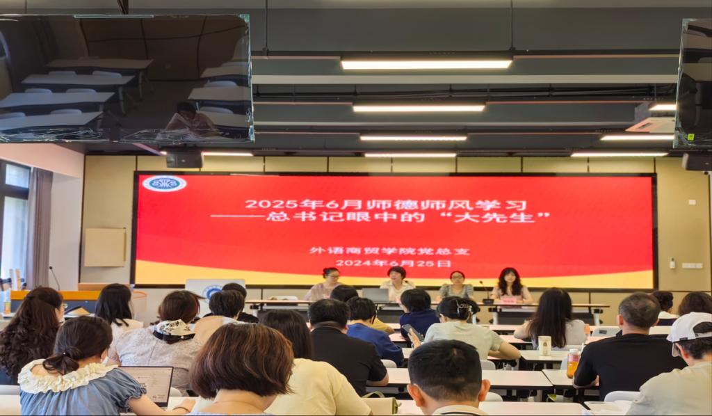 为深入贯彻落实习近平总书记关于教育的重要论述,切实加强教师队伍思想政治建设,2025年6月26日下午,外语商贸学院党总支于产创楼E-307开展师德师风专题学习活动。本次学习以观看央视新闻专题视频《总书记眼中的“大先生”》为核心内容,由党总支书记林锦芯主持,全体教师参与学习并展开深入研讨。
