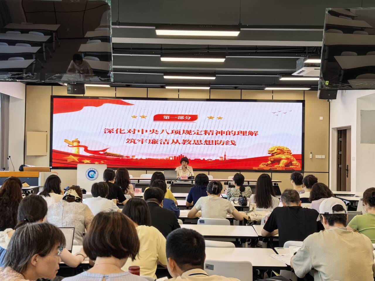 林锦芯书记围绕“深化对中央八项规定精神的理解,筑牢廉洁从教思想防线”这一主题进行深入讲解。她通过具体案例分析,阐述了廉洁从教的重要性,并强调了教师在教育教学中应坚守的道德底线,引导教师们树立正确的价值观和职业操守,确保教育教学的纯洁性和公正性。