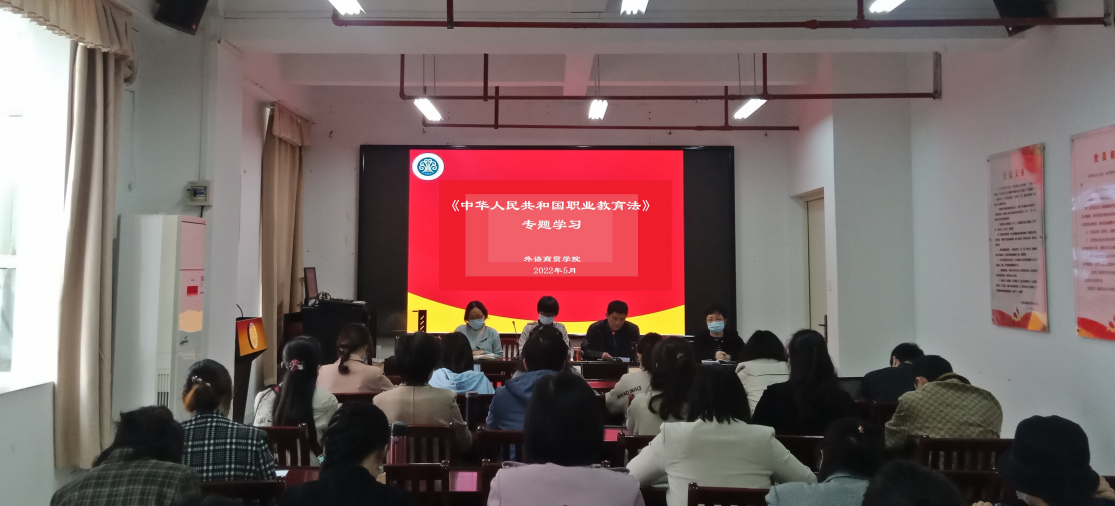 会议首先由卢燕红副院长为大家解读新修订的《中华人民共和国职业教育法》。这是该法自1996年颁布26年以来首次进行大修,于5月1日起正式实施。新法纵向贯通,形成技术技能人才培养的完整通道,体系结构更加完备,为促进经济社会发展和提高国家竞争力提供优质人力资源支撑,体现了最新的发展理念和制度创新。