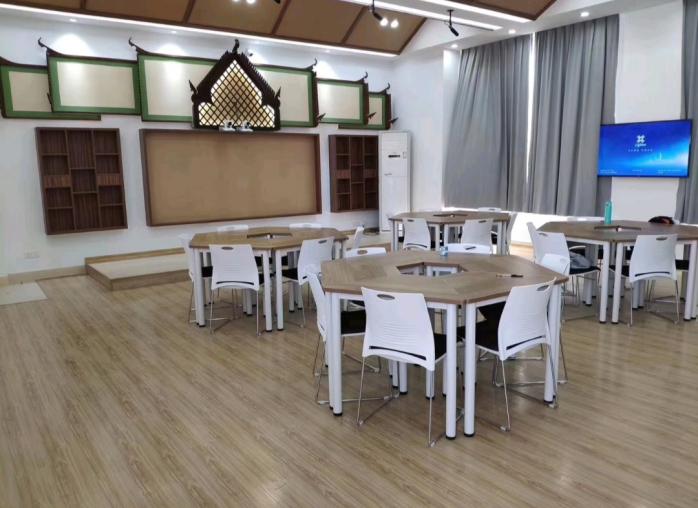 已拥有东南亚风情实训室、进出口业务模拟操作实训室、云网络智能化语言实训室各一间,为学生的专业学习提供了强有力的支持。同时,已建设东南亚文化体验中心,引进柬埔寨语书籍文献资料,为专业学子提供优越的学习环境。