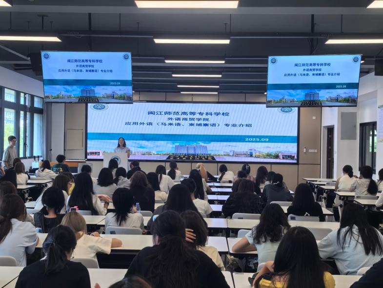 应用外语教研室主任李绍梅为2025级应用外语专业新生做新专业介绍时指出应用外语专业秉承“语言能力为基、商务素养为核”的培养理念,学生在夯实马来语、柬埔寨语基础的同时,还需掌握国际贸易、跨境电商等实务知识,成长为复合型人才。她特别指出在- 中国 - 东盟合作深化背景下小语种人才的就业优势。