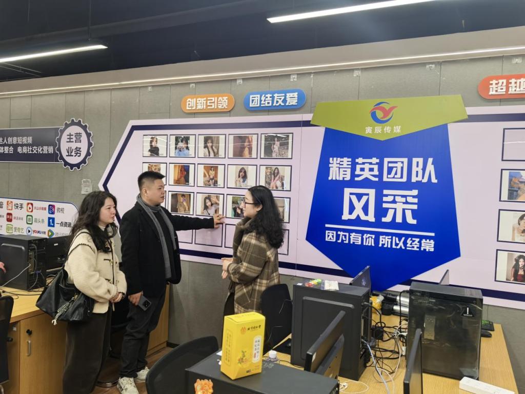 外语商贸学院持续深化校企合作,积极拓展学生就业渠道,1月17日,学院副院长陈海燕、商贸教研室骨干教师韩静一行深入福州市寅辰传媒有限公司直播基地开展“暖就业”访企拓岗行动。