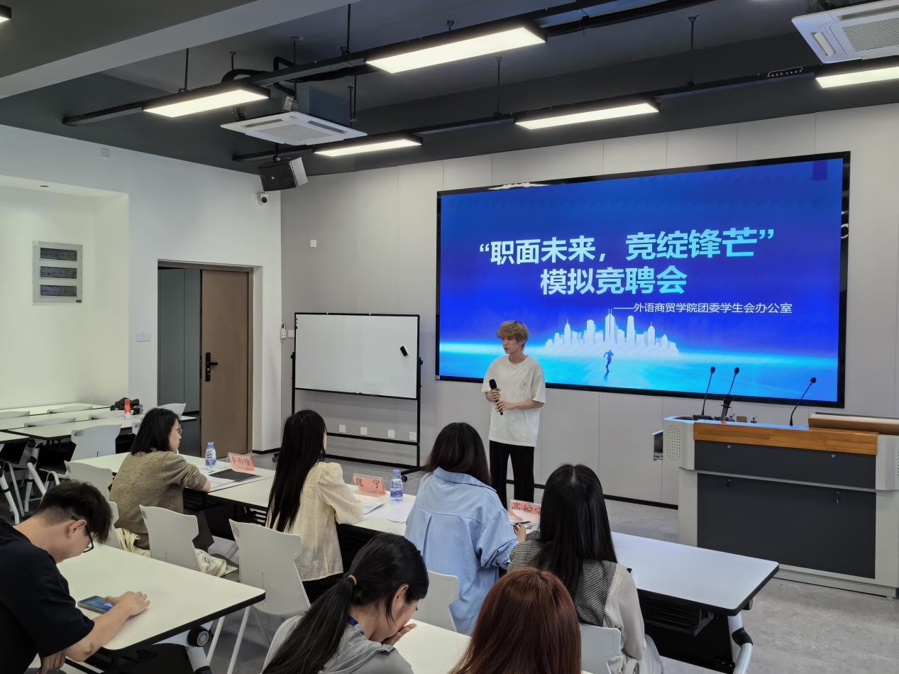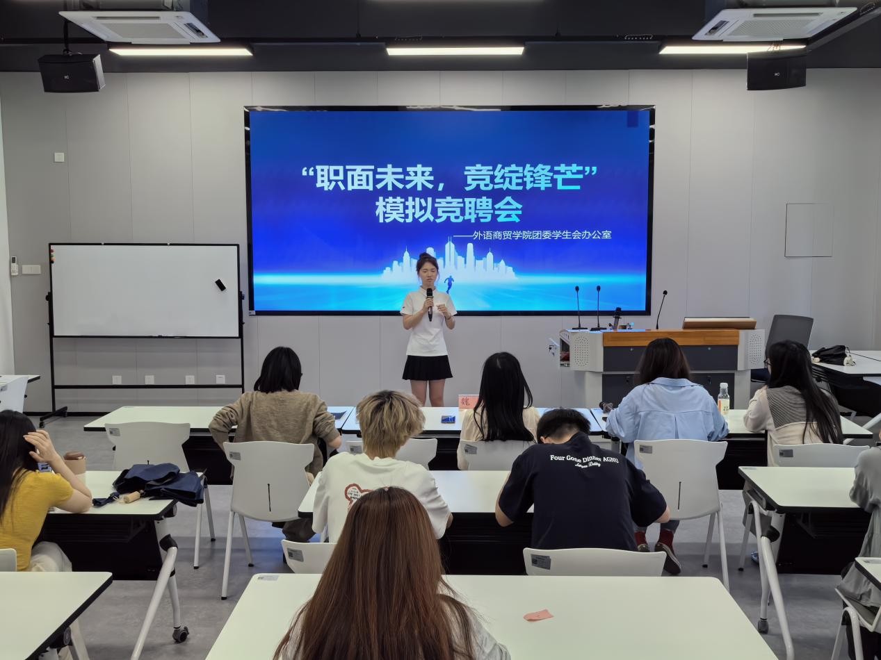 为让学生提前熟悉职场竞聘流程,直面求职问题,提升求职技能,外语商贸学院于2025年4月16日15:30在2018教室开展以“职面未来,竞绽锋芒”为主题的大学生模拟竞聘活动,就业导师魏宁、李雨晴、高婉宁担任评委,学院2023、2024级全体学生参加。