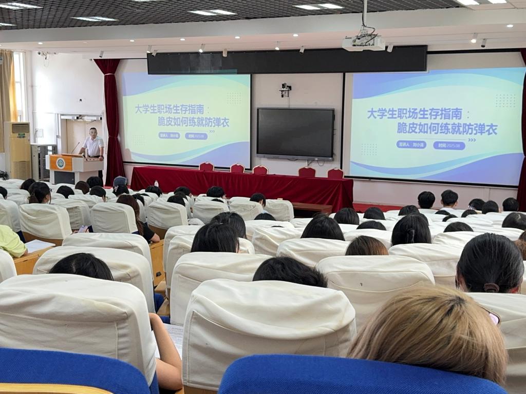 为深化校企合作,推进2026届毕业生实习就业工作,2025年8月15日,数智产教(福州)教育科技有限公司企业导师团队——产业学院院长刘小清、总经理魏丽琴、互联网营销师吴海娟一行,来到外语商贸学院,面向学院23级国际经济与贸易、应用英语、跨境电子商务及应用外语专业学生,举办了实习招聘宣讲会。