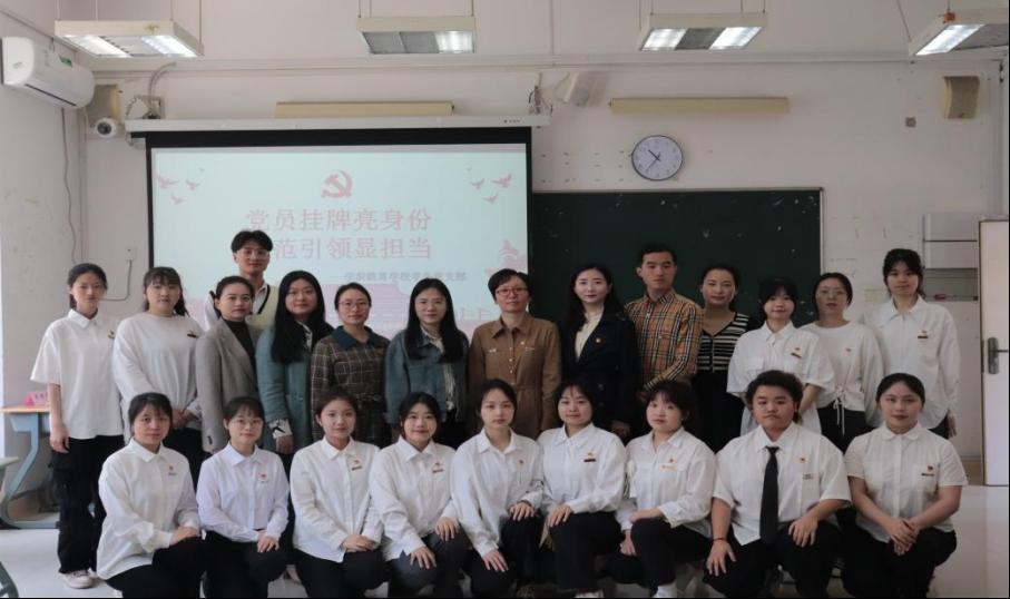 为进一步发挥学生党员模范带头作用,推进学生宿舍文明建设,学前教育学院学生党支部于2023年5月10日在教学楼2012开展“党员挂牌亮身份,示范引领显担当”学生党员宿舍挂牌活动。本次活动中,学院党委副书记杨美玲、学生党支部全体党员共同参与。