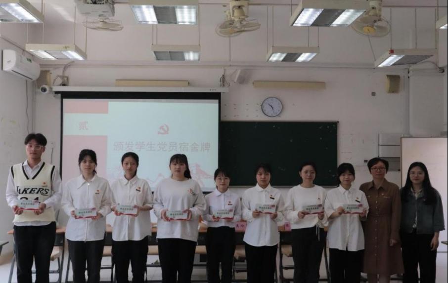 本次活动分为两个部分:党员座谈会和党员宿舍挂牌仪式。在座谈会中,学生党员代表们纷纷发言,分享了作为党员,自身应该如何在学习与生活中做好模范作用,与大家详细诉说了自身往后的规划。在场的老师们聆听后,都表达了对学生党员的希翼与鼓励,对他们走向更高更广阔的未来寄予最美好的祝愿,希望党员们心系“国家事”、肩扛“国家责”。紧接着,党员宿舍挂牌仪式拉开序幕,老师们为党员学生颁发了党员宿舍牌。接过老师手中的标牌,大家纷纷表示,要始终坚定理想信念,以饱满的精神迎接各种挑战,发挥好党员先锋模范作用,继承赓续红色血脉,担当时代使命的坚定信念。接着,学院党委副书记杨美玲对党员们提出希望,激励在座的学生党员既要“亮党员身份”,也要“展先锋形象”,争做有理想、敢担当、能吃苦、肯奋斗的新时代好青年。