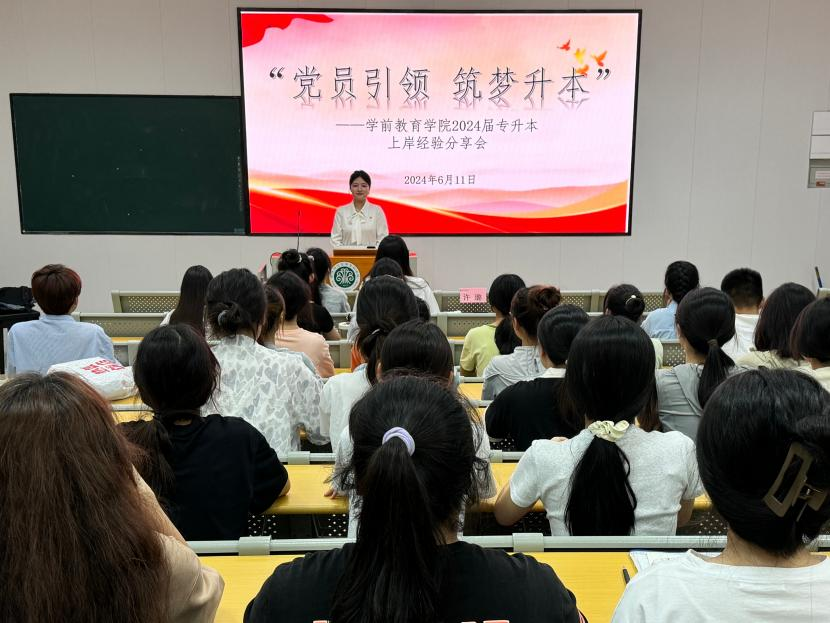 6月11日晚,学前教育学院在旗山校区2014教室举办“党员引领,筑梦升本”专升本经验分享会。会议邀请了2024届许璐、陆子琳、张依美3名学生党员作经验分享,辅导员王玮老师及一二年级百余名同学前来参加。