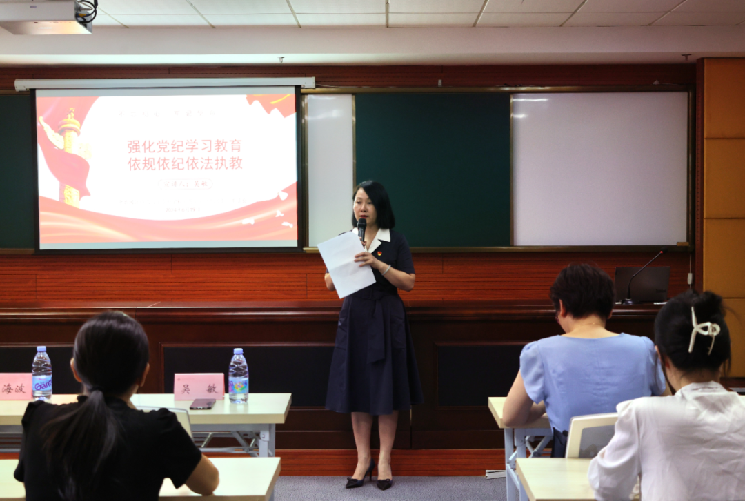 学院党委副书记王海波、党委委员、附属实验幼儿园党支部书记吴敏、教师党支部副书记白慧、附属第三幼儿园党支部书记陈宁、附属第四幼儿园党支部书记王真,先后上台为党员师生讲授党纪学习教育专题党课,5位书记的党课内容丰富、思想深刻、针对性强,有助于加深党员们对新修订的《中国共产党纪律处分条例》的理解和认识,对如何加强党性修养、严守党的纪律规矩有了更加明确的方向和目标。