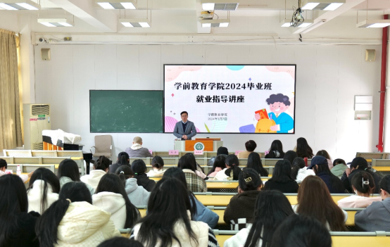 为进一步推进2024届毕业生顺利升学和就业工作,2024年3月7日中午,学前教育学院在旗山校区2014教室举办了2024届毕业班就业指导讲座。学前教育学院党委副书记王海波、杨美玲、2024届毕业生辅导员及2024届各班级毕业生代表参加本次讲座,讲座由陈晓萌老师主持。