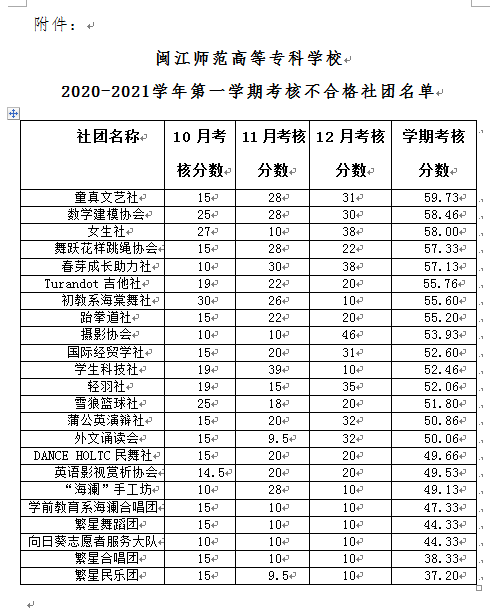 附件:大赢家体育app下载 2020-2021学年第一学期考核不合格社团名单