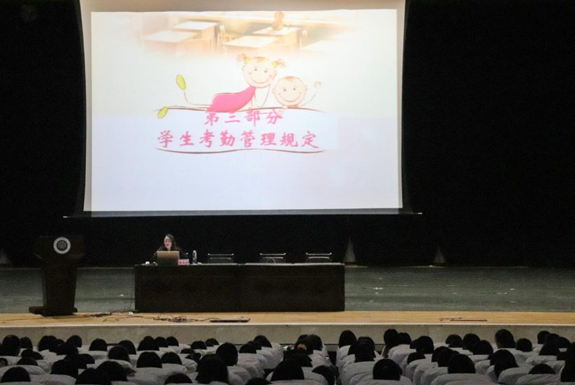 为进一步加强学前教育系系风学风建设,强化学生遵规守纪意识,2020年11月7日下午两点,学前教育系在学术报告厅举办了2020级新生入学教育之校纪校规教育专题讲座。本场讲座以“树文明新风,建和谐校园”为主题,由辅导员李龙娇主讲,2020级全体新生参与。